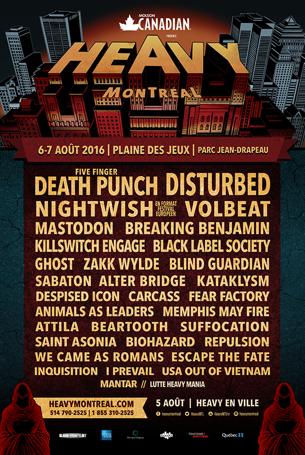 Black Label Society apportera de la virilité, de l’huile à transmission et énormément de poils au Heavy Montréal. De plus, Zakk Wylde offrira un concert solo. Sous quelle forme? Le tout reste à confirmer. Blind Guardian et Sabaton ne sont pas des groupes envers lesquels j’ai une certaine assiduité mais une chose est certaine avec eux : leurs concerts sont magistraux en plus d’être complètement… plaisants! Les deux groupes ont un plaisir indéniable sur scène et de les voir s’éclater de la sorte ne peut que te convaincre d’embarquer dans leur folie.