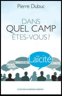 Pour alimenter cette réflexion, je leur recommande la lecture du livre de Pierre Dubuc, rédacteur en chef de L’aut’journal, intitulé Dans quel camp êtes-vous?, et portant en sous-titre les thèmes premières nations, immigration, laïcité et langue (Éditions du renouveau québécois, 2019).