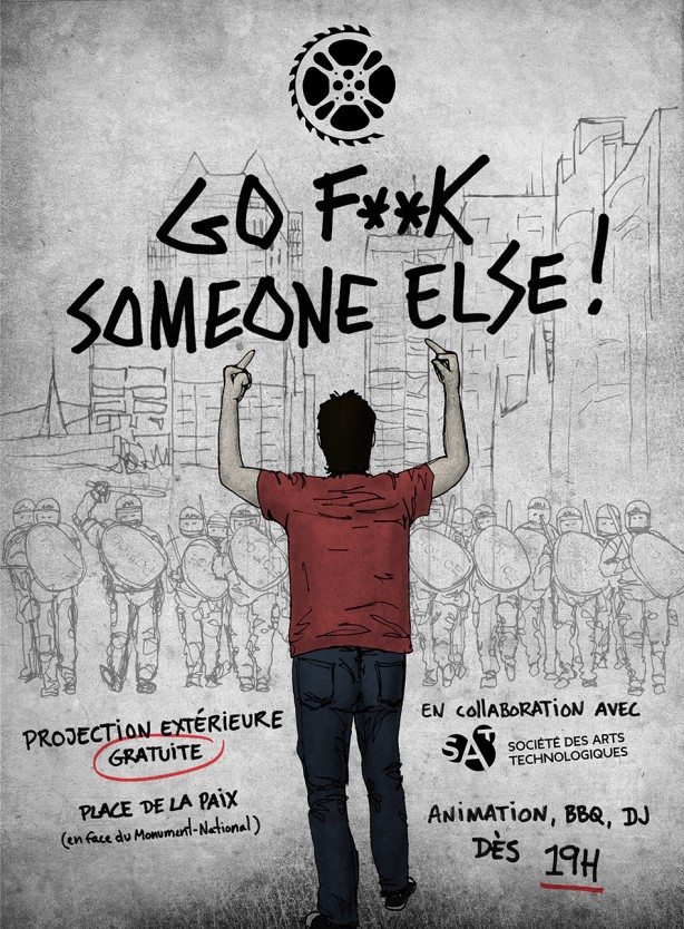 <a href="https://voir.ca/danny-lennon/files/2012/07/Lowres-PCC-affiche-2012-Go-fuck-with-someone-else-V2.jpg"><img src="https://voir.ca/danny-lennon/files/2012/07/Lowres-PCC-affiche-2012-Go-fuck-with-someone-else-V2-614x834.jpg" alt="" width="614" height="834" class="aligncenter size-large wp-image-2275" /></a> Du court métrage un brin engagé et un brin d'actualité ce soir dès 21h00 à la Place de la paix (en face du Monument-National) et c'est GRATUIT! Programmation complète sur: www.sat.qc.ca