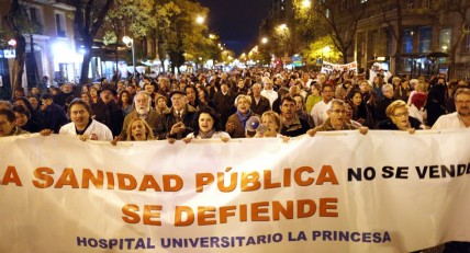 Dans la foulée des coupures résultant de la folie d’austérité qui s’est emparée de l’élite économique et politique européenne et mondiale – ou est-ce leur normalité détraquée et hallucinée – le gouvernement municipal de la communauté de Madrid a décidé fin octobre 2012 de privatiser d’importants pans de la Sanidad Pública. 6 nouveaux hôpitaux, construits en 2008, seront gracieusement donnés au privé par le gouvernement local d’Ignacio González, qui espère sauver 200 millions de dollars en agissant de la sorte. À cela doit s’ajouter la privatisation de plus de 27 centres de santé de plus petite taille. En plus de ces institutions, la privatisation s’étendrait aux services non-sanitaires requis par l’exercice du soin : cuisine, buanderies, entretien, etc… La justification habituelle : pour éviter des hausses de taxes et ainsi augmenter injustement votre fardeau fiscal, bonnes gences, nous privatiserons, c’est plus propre, plus efficace et ça respire l’ordre.