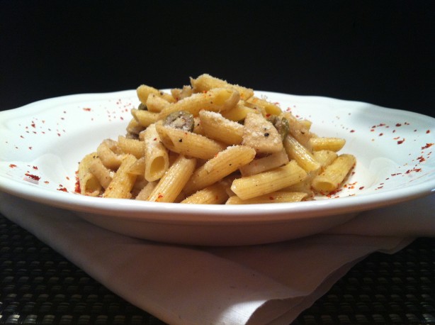 Penne aux anchois, cœurs de palmier et olives vertes :