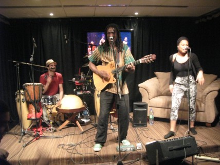 Pour la troisième fois, j’ai invité Wesli à rencontrer les Souverains pour clôturer la saison d’hiver 2012. C’était jeudi 5 avril dernier. Accompagnée vocalement de la belle Sanya Michel Élie et de Kattam au percussions, Wesli a simplement ensorcelé les 40 Souverains venus l’écouter. Pour plusieurs, c’était la première fois qu’ils voyaient Wesli à l’œuvre sur scène. Des Souverains de différentes origines ont abordé avec lui le thème principal de son deuxième album « Liberté dans le noir ».