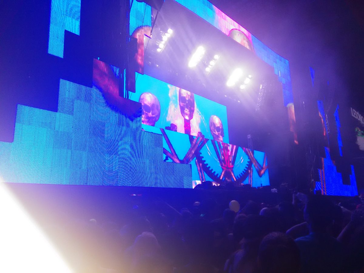 Conscients que la majeure partie du temps il se passe à peu près rien sur scène à part un dude qui saute derrière un laptop, les organisateurs ont mis le paquet en matière d’artéfacts grandiloquents et d’ornements scéniques.