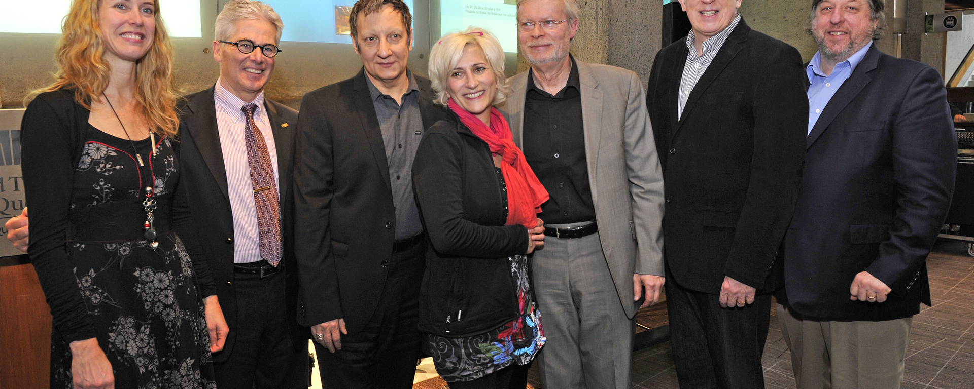 Photo : De gauche à droite: Julie Lemieux de la Ville de Québec, Gaston Déry (président du Festival d'opéra), Robert Lepage, Natalie Choquette, Grégoire Legendre (directeur général et artistique du Festival d'opéra), Stéphane Laforest (chef de la Sinfonia de Lana