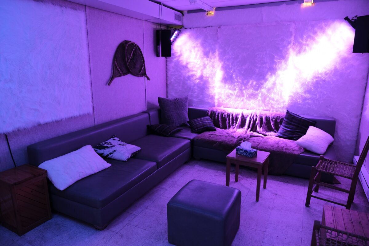 De passage dans la zone VIP pour se réchauffer, on se rend compte qu’on entend beaucoup mieux le son ici. «Plus rien ne me fascine / Tous les jours, j’ai l’impression qu’la police écoute mes conversations», rappe White-B, alors qu’on est bien assis, confortable et en toute sécurité, sur ce divan.
