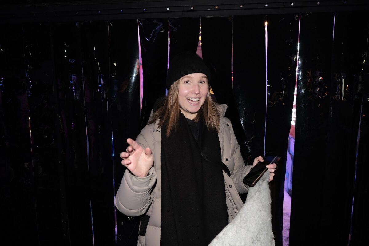 Les gens qui sortent de cette glissade promotionnelle ne s’attendaient clairement pas à se faire photographier en passant ces rideaux.