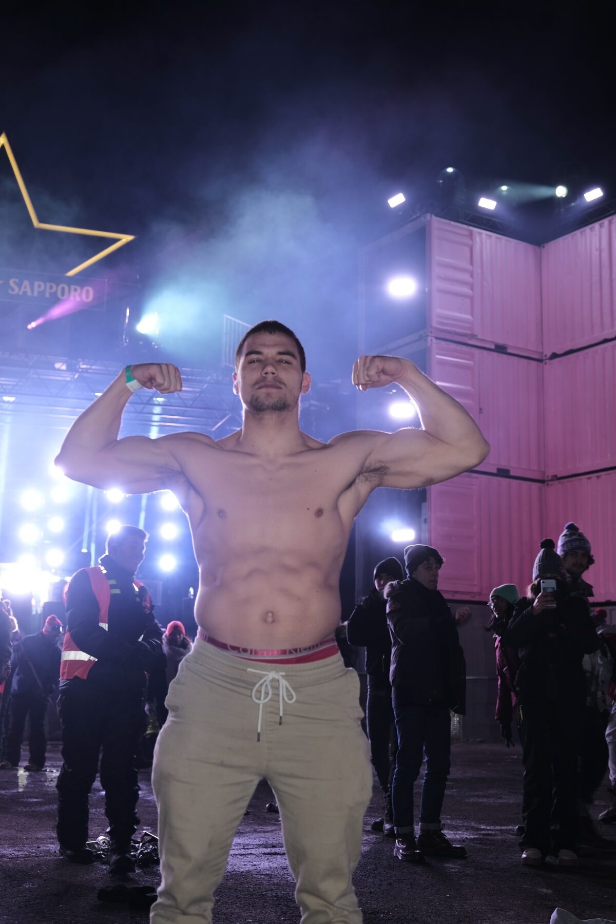 En attendant Loud, nous visitons le site. Rencontré au détour d’un kiosque promotionnel, ce bonhomme de neige nous plonge dans un état de mélancolie précipité.