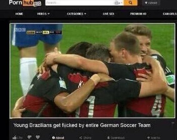 Suite à la défaite écrasante du Die Mannschaft (un nom relativement évocateur dans les circonstances) contre une équipe brésilienne démunie, les utilisateurs du site ajoutaient des vidéos du match avec des titres plutôt crus comme « brazilian men getting fucked by a soccer team » et autres références sexuelles à la défaite humiliante de 7 à 1.