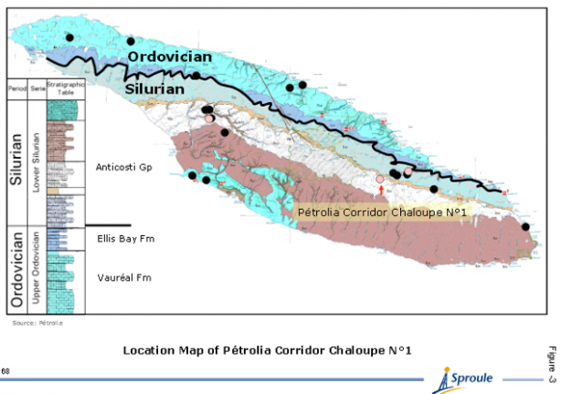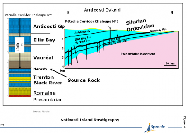 – Anticosti : forage d’exploration jusqu’au précambrien. Il n’y a que l’exploitation de la roche-mère qui présente un intérêt à l’exploitant. On n’a pas trouvé de gisement conventionnel. Il faudrait procéder à la fracturation hydraulique. Voir la conférence complète à [http://www.youtube.com/watch?v=LaxTLI…]