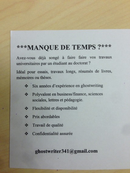 Dire que les clients de ce sous-traitant risquent leur réputation s’ils se font prendre. Et dans le milieu universitaire, la réputation, c’est la plus grande valeur intangible de l’individu.
