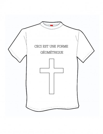 Tracer une ligne sur ce qui est permis ou non amène le citoyen à jouer avec les règles. Ainsi, la démonstration d’hier de Monsieur Drainville ressemblait à un code vestimentaire annoncé par un directeur d’école. Comment un adolescent contournerait-il le code ? Quoi de mieux qu’une démonstration par l’absurde pour démontrer l’illogisme d’une mesure ? Alors, voici le nouveau t-shirt potentiel d’un employé du secteur public au travail. Que pensez-vous de ma proposition ? Elle peut être adaptée à toutes les religions, n’est-ce pas merveilleux ? Une croix dessinée, est-ce une forme géométrique ou un signe ostentatoire ?