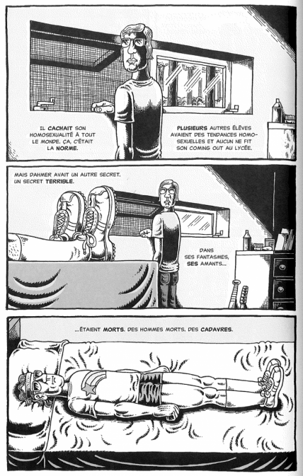 La mort a sa place dans ces pages. C’est elle, justement, cette force dévastatrice qui consume Dahmer. Dans ses cauchemars autant que dans ses pulsions. L’adolescent se raccroche à ce qui l’entoure pour ne pas y sombrer. Mais, au final, des amis, il n’en a pas. Pas vraiment. Sa famille, elle, se déchire sous ses yeux. Puis disparais, peu à peu. Pour laisser le jeune homme seul, avec ses pensées sombres qui finiront, on le sait, par l’envahir entièrement. Et, plus tard, en 1991, par faire de lui « le cannibale de Milwaukee », qui fut condamné à 157 ans de prison pour une série de 19 meurtres.