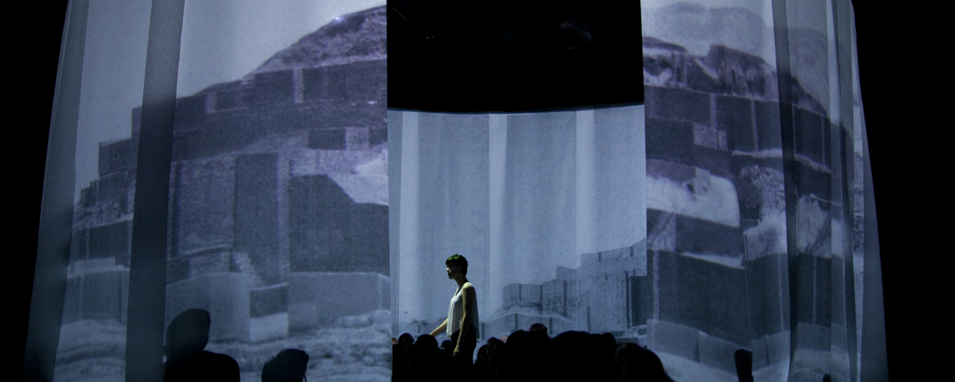 D’emblée, c’est la scénographie d’Odile Gamache qui charme. Trois panneaux blancs disposés les uns à côté des autres pour former un cercle, puis ces petits oreillers genre Ikea pour asseoir le fessier des spectateurs invités à laisser leurs bottes sales à l’entrée. La table est mise pour la messe qui suit, une célébration franchement près du rituel religieux.