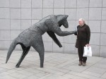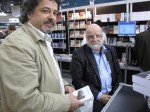 Mon mari, Marsi s’est dirigé vers C’était au temps des mammouths laineux , il désirait un exemplaire pour un ami et un autre pour lui. Un hasard, l’auteur, Serge Bouchard était justement présent. J’ai fait mon chien de poche, j’ai suivi Marsi, ne voulant rien manquer de cette rencontre qui a renforci mon impression que côtoyer Serge Bouchard est un privilège. Cet homme est directement lui, ne passe pas par divers miroirs ou masques. En plus, je le soupçonne d’être doté d’une bonne dose d’intuition puisqu’il a écrit des dédicaces si appropriées que nous sommes retournés pour le lui faire remarquer et l’en remercier.