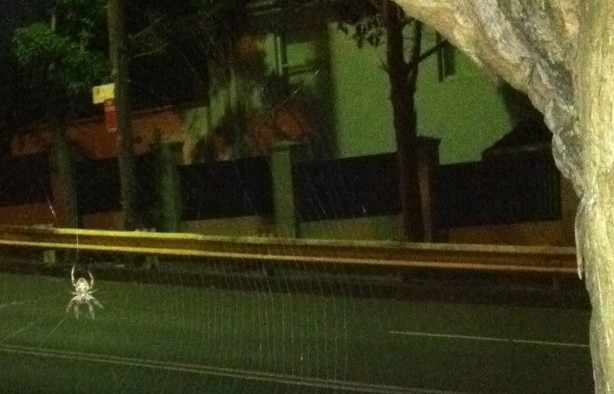 En déjeunant ce matin, entre deux soupirs d’on-est-tu-dont-bien-icitte, j’avais la trouille. Est-ce qu’une veuve noire va me piquer entre les orteils? Est-ce qu’une araignée poilue gigantesque va tenter de goûter ma mangue? Un serpent venimeux va-t-il sortir de son nid? Parlant de serpent, je dors chaque soir près d’un python. Monty, the Python. Il est pas sensé sortir de son aquarium. Des fois, je pense au froid canadien, comme une maman protectrice qui élimine ce genre de frayeurs quotidiennes avec la première bordée de neige… Pour vous prouver que j’exagère même pas, la photo ci-dessous témoigne de la taille d’une bestiole qui vit au coin de ma rue; argh.